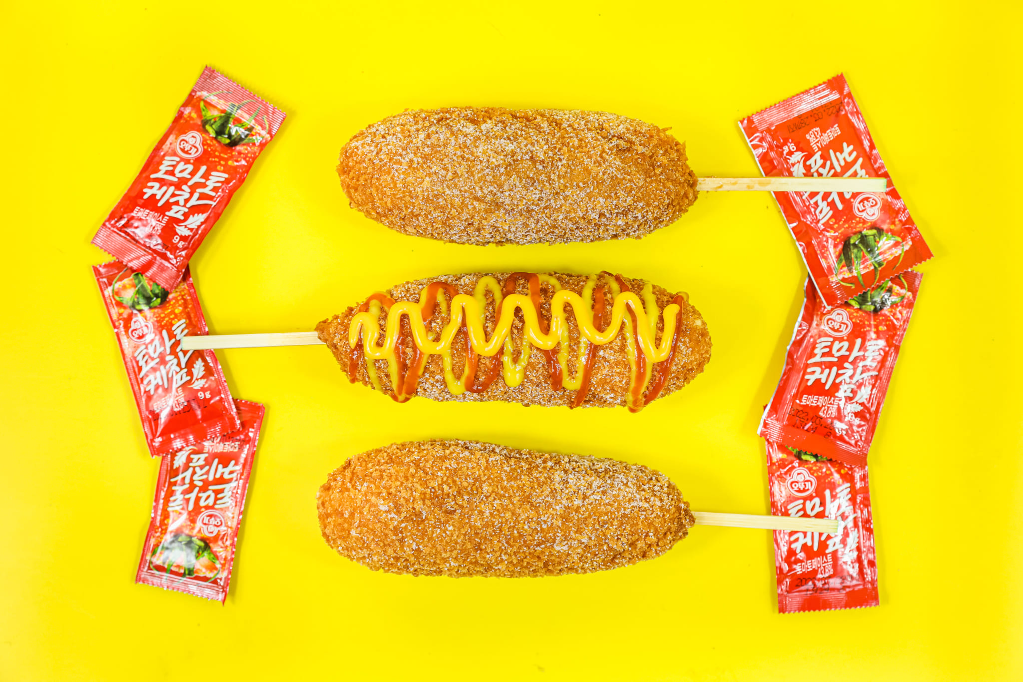 Gorae Hotdog is a Korean brand known for mainly hotdogs wrapped in a special dough recipe then rolled in crumbs, noodles, and other interesting ingredients.